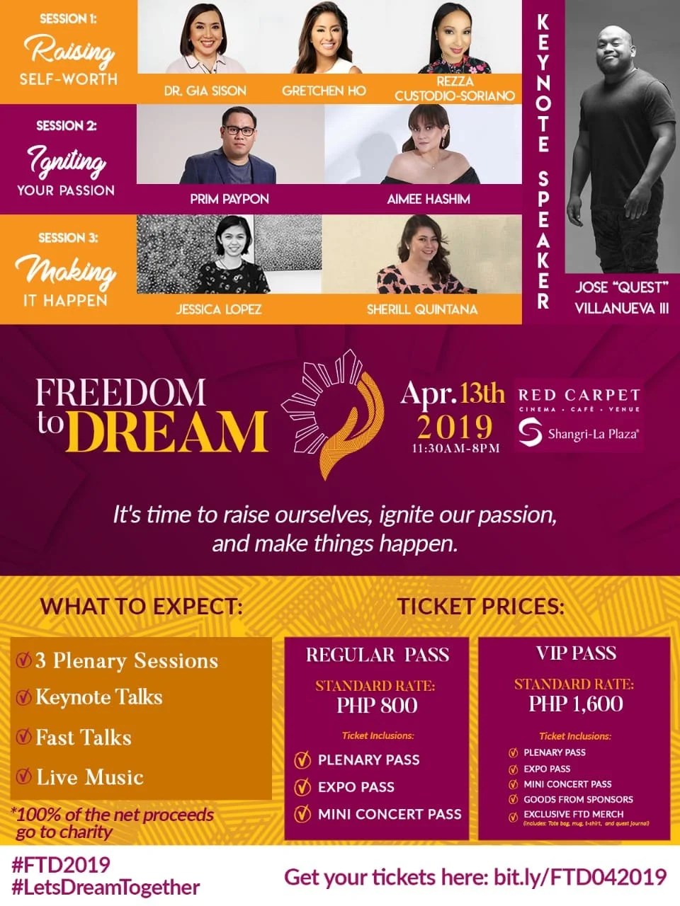 Viviamo! Inc., makers of the Belle de Jour Power Planner, is spearheading the first Freedom to Dream Summit on April 13,2019 at the Red Carpet Cinema, Shangri-La Plaza. The event is meant to inspire and encourage the Filipino youth to discover their dreams, pursue their passions, and make a difference.